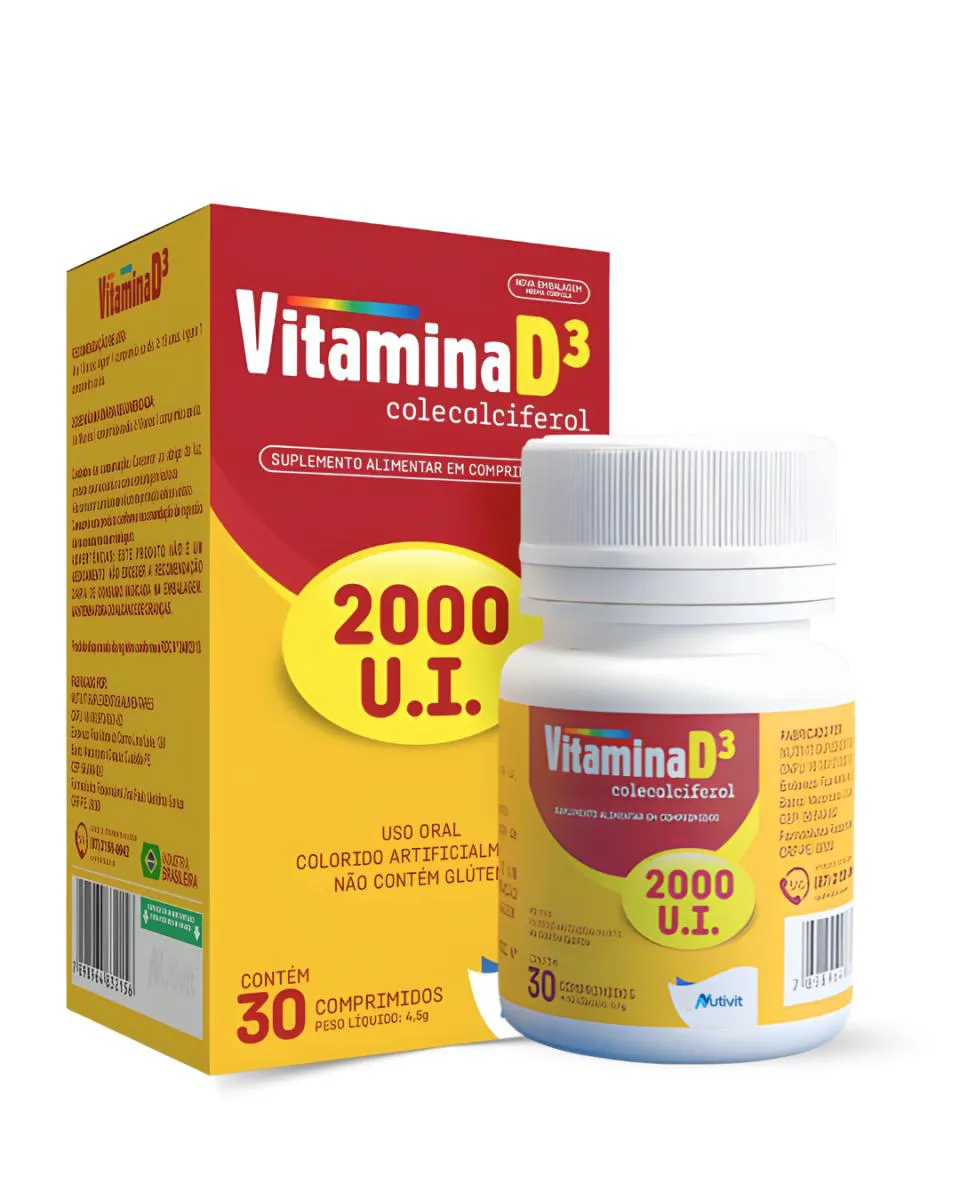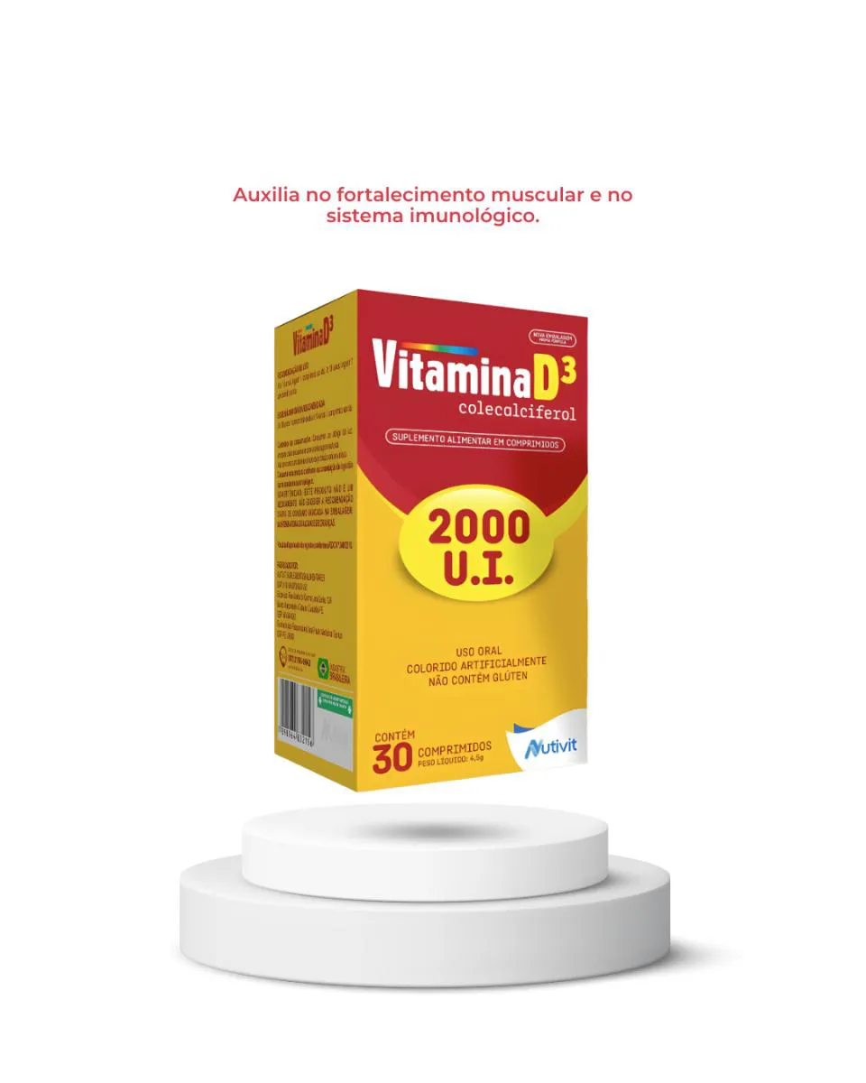 A vitamina D3 2000 UI da Nutrivit é um suplemento que auxilia na absorção e regulação do cálcio e fósforo no organismo, sendo essencial para a saúde dos ossos, dentes e o funcionamento adequado do sistema imunológico e muscular. Os principais benefícios e funções incluem: -Saúde Óssea e Dental: É fundamental para a formação e manutenção de ossos e dentes fortes, prevenindo a fragilidade óssea e fraturas, e auxiliando na prevenção de doenças como raquitismo, osteomalácia e osteoporose. -Funcionamento do Sistema Imunológico: Níveis adequados de vitamina D3 fortalecem o sistema imunológico, ajudando o corpo a combater infecções por bactérias e vírus. -Função Muscular e Neuromuscular: Contribui para o funcionamento normal dos músculos e melhora a força muscular. Regulação de Processos Corporais: Auxilia na manutenção dos níveis de cálcio no sangue e participa do processo de divisão celular.