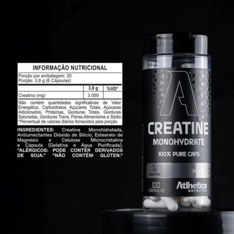 100% Creatina Monohydratada Atlhetica Nutrition 120 Capsulas Neutro