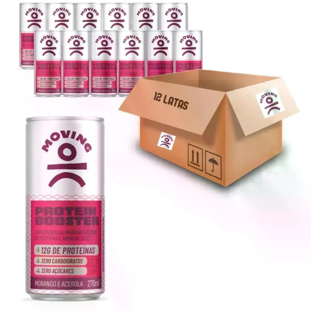Protein Booster Moving 12g Proteína Morango e Acerola 270ml – A Nutrição Prática e Eficiente para o Seu Corpo A Bebida Proteica com Aminoácidos Protein Booster Moving é a escolha ideal para quem busca praticidade e nutrição de alta qualidade. Com 12g de proteína e BCAA's essenciais, é perfeita para quem deseja um reforço proteico em qualquer momento do dia. Com apenas 52kcal por lata e zero carboidratos, ela se adapta perfeitamente a dietas low carb e ajuda no controle da ingestão de açúcares. Diferenciais Exclusivos: