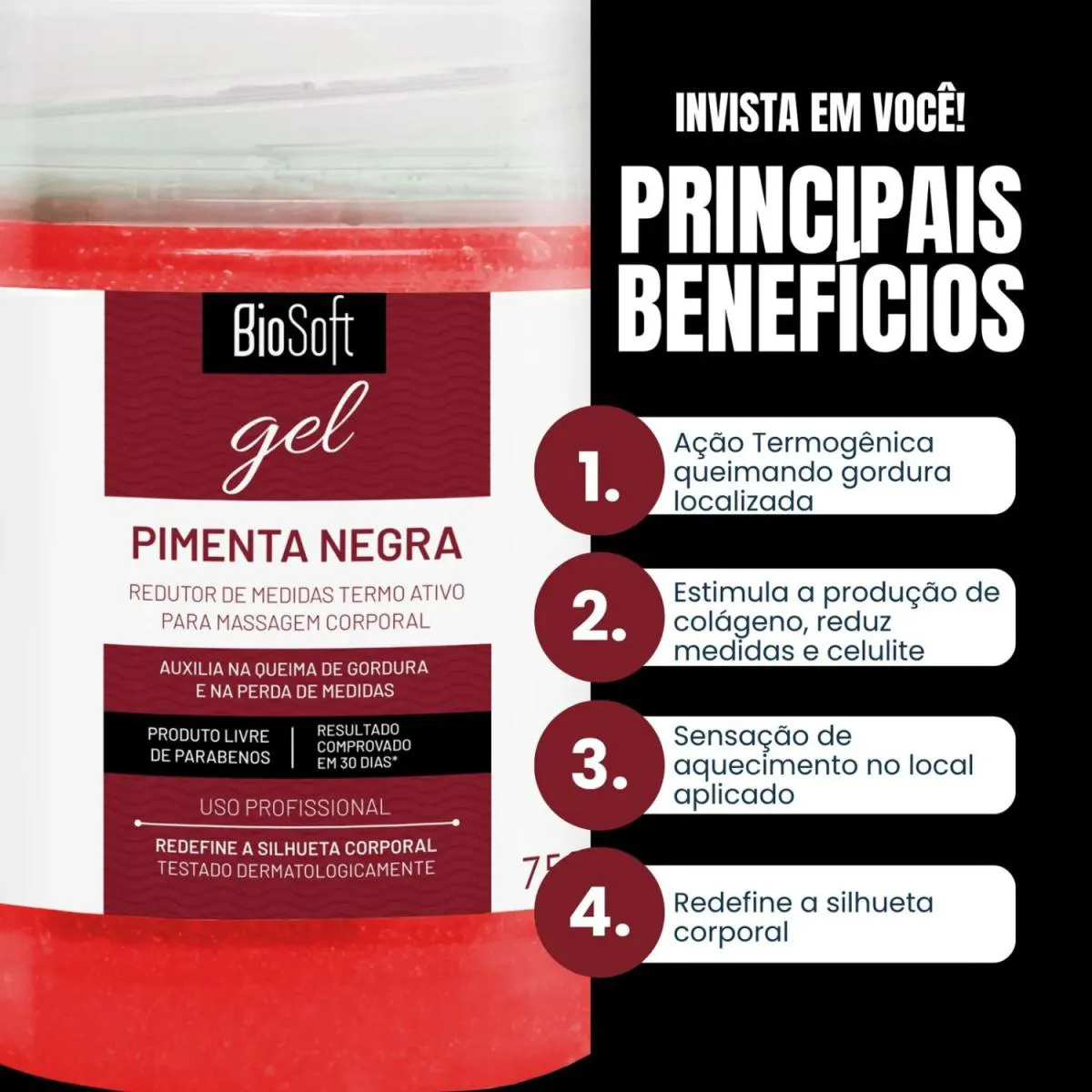 1-Gel de Massagem Redutor de Medidas Pimenta Negra 750g