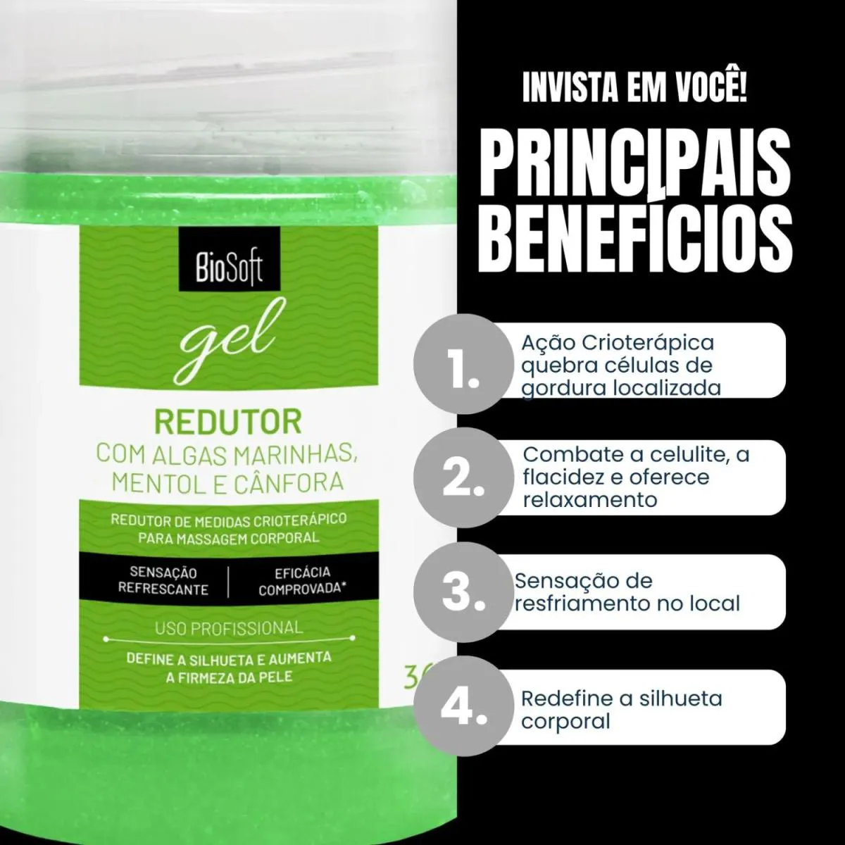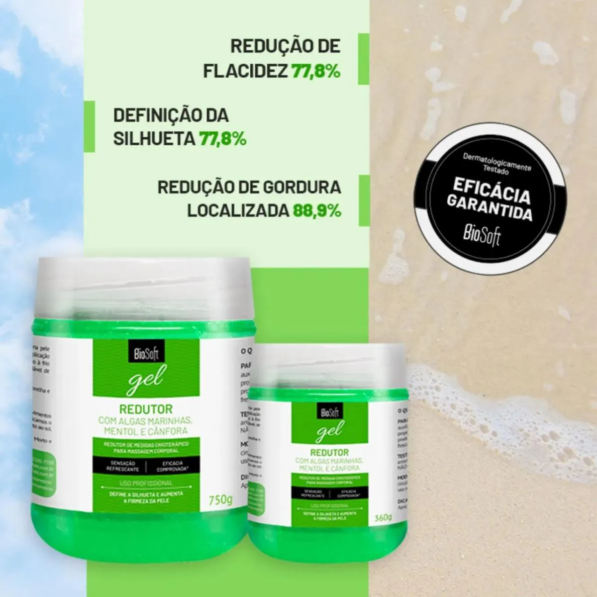1-Gel de Massagem Redutor de Medidas Mentol, Cânfora e Algas Bio Soft 750g