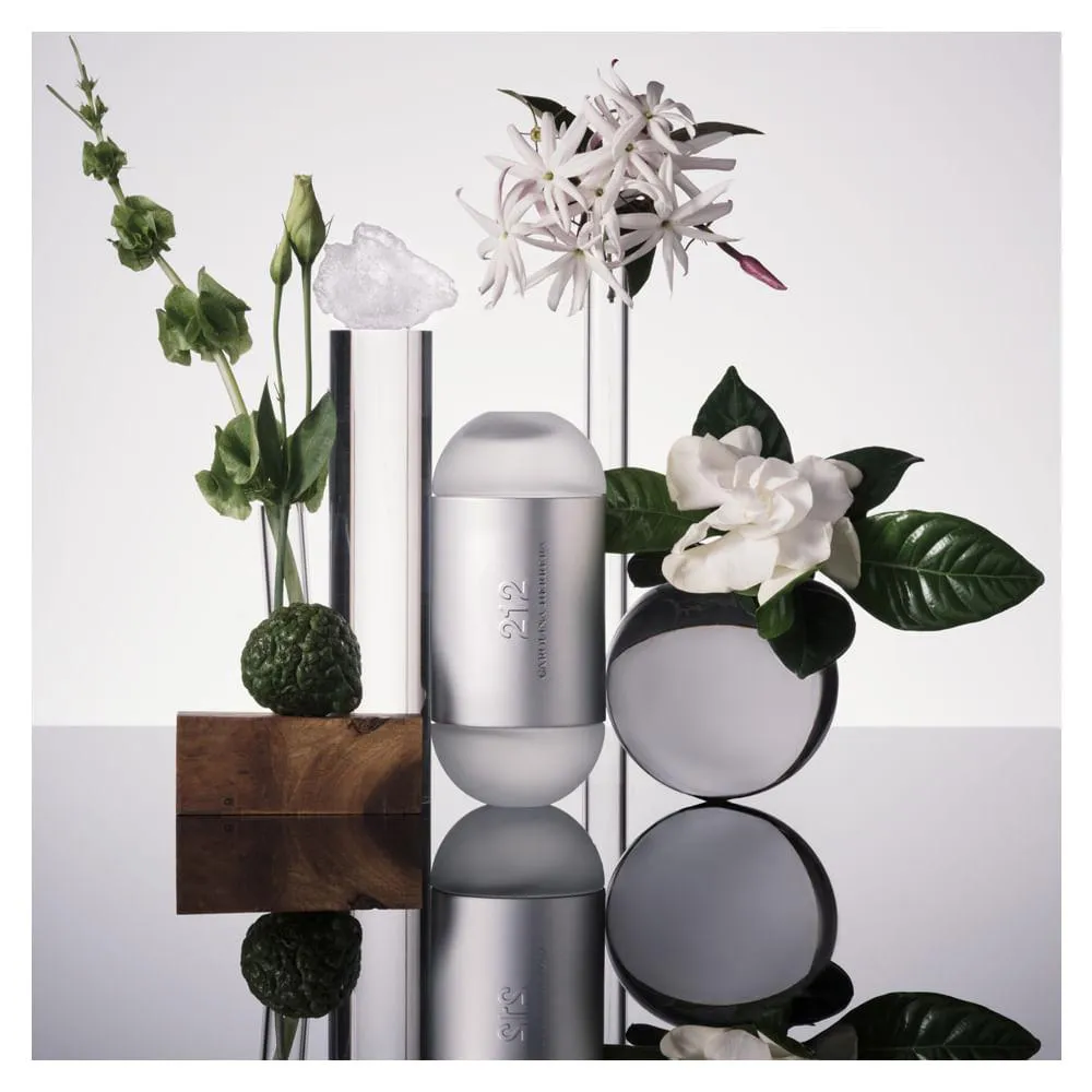 A embalagem da fragrância 212 oculta mais do que revela. No seu interior está uma invulgar estrutura de vidro e metal criada para ser uma peça moderna e, ao mesmo tempo, clássica.