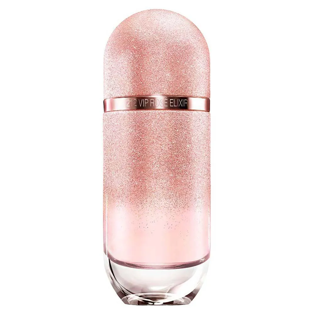 212 VIP Rosé Elixir é uma interpretação sensual e mais intensa de 212 VIP Rosé, apresentada em um frasco degradê rosa com glitter.