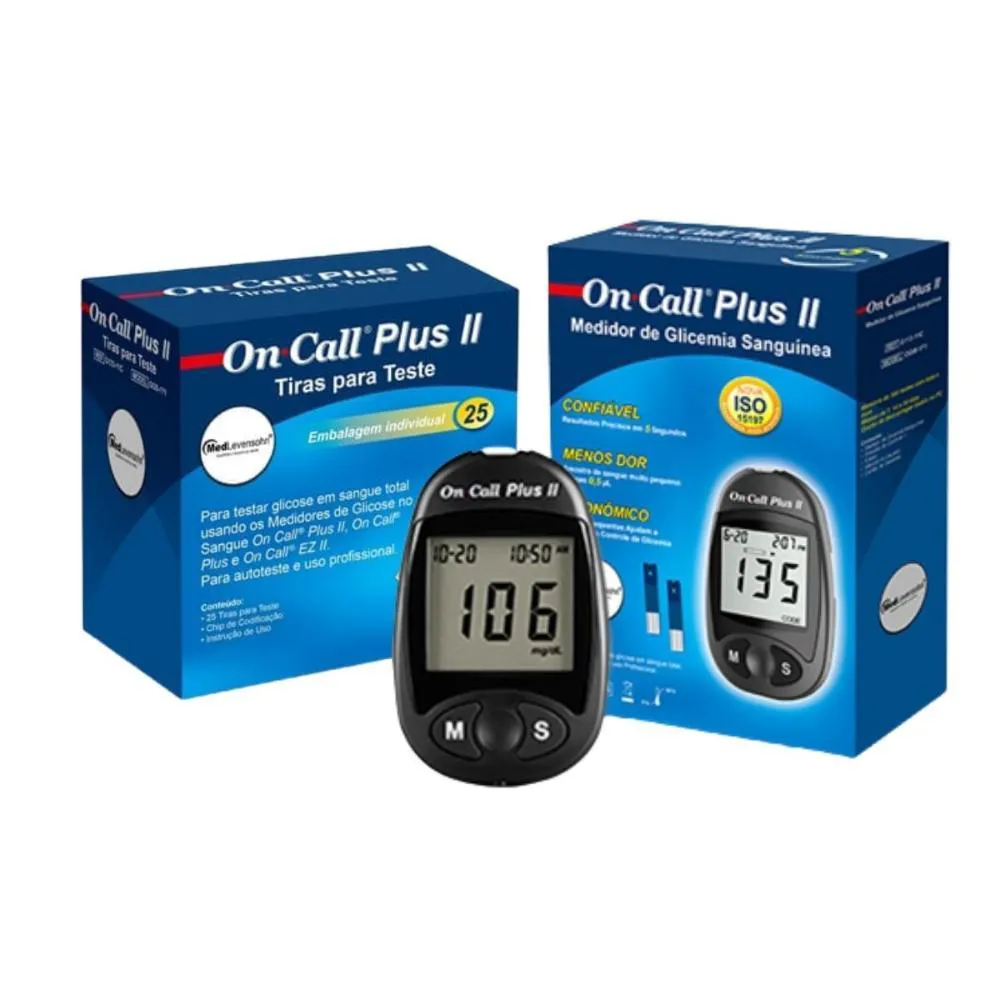 25 Tiras Individuais + Monitor de Glicose On Call Plus Ii