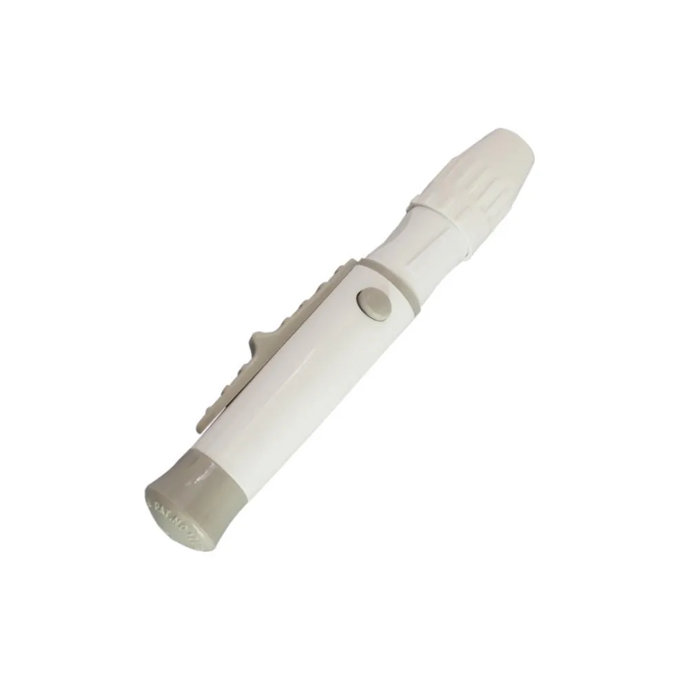 - Com o lancetador, obter uma pequena gota de sangue na ponta do dedo.