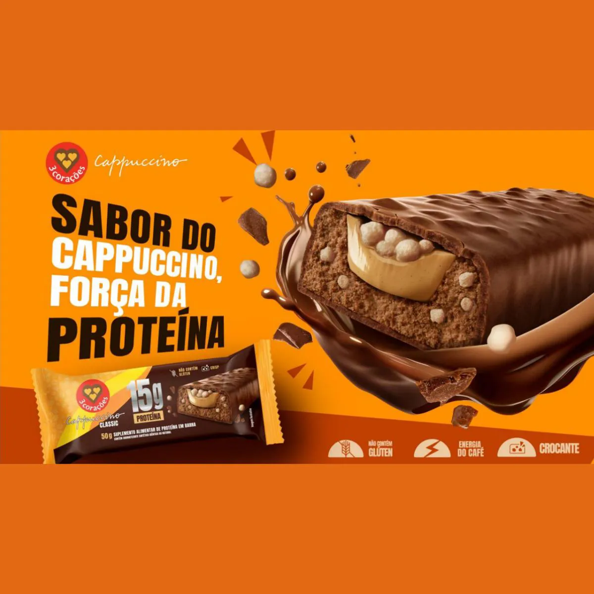 2X Barra Proteica 3 Corações Cappuccino Classic 12Un 50G