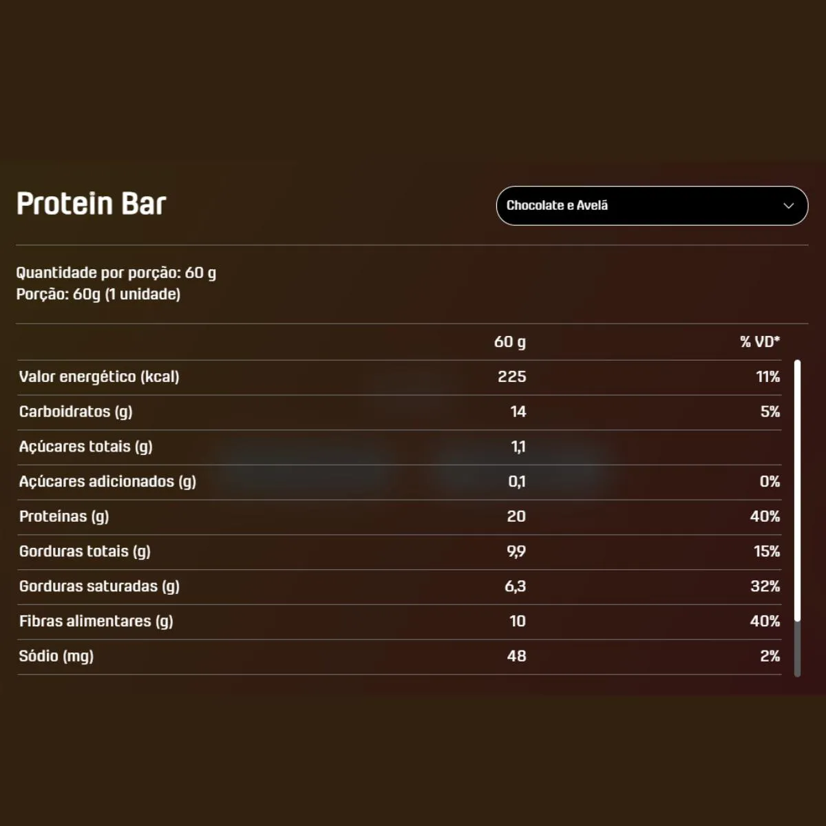 A barra perfeita com 20 g de proteína, desenvolvida a partir de um blend proteico premium, oferecendo um sabor irresistível. Feita com ingredientes de altíssima qualidade, é a escolha ideal para quem busca nutrição e prazer em cada mordida. Nossa Protein bar contém 20 g de proteína por barra, auxilia no ganho de massa muscular, controla o apetite e promove saciedade. Possui frutas ou nuts naturais, oferecendo um valor nutritivo ainda maior e um sabor incrível. É uma ótima escolha para atingir metas nutricionais diárias enquanto desfruta de um snack saboroso e funcional. A proteína é um macronutriente essencial porque fornece aminoácidos fundamentais para a construção e reparação do tecido muscular. Nosso Protein Bar composto por proteínas de alto valor biológico e uma combinação equilibrada de carboidratos e gorduras saudáveis, fornece energia de forma sustentada e contribuem para um estilo de vida saudável e ativo. Ingredientes: Blend de proteínas (proteína concentrada de leite, caseinato de cálcio e proteína de soro do leite isolada), cobertura sabor chocolate branco (gordura de palma, proteína de soro do leite concentrada, soro de leite desmineralizado, leite integral, colágeno hidrolisado, estabilizante INS 965(i), emulsificantes INS 322(i) e INS 476 e aromatizante), xarope de tapioca, recheio sabor coco (gordura de palma, leite desnatado, soro de leite, estabilizante INS 965(i), espessante INS 1200, emulsificante INS 322(i), aromatizante e edulcorante INS 960a), colágeno hidrolisado, frutooligossacarídeos (FOS), gordura de palma, coco ralado, umectante INS 422, antioxidante INS 307b, aromatizante, conservante INS 202 e edulcorante INS 955. ALÉRGICOS: CONTÉM DERIVADOS DE soja E LEITE. PODE CONTER TRIGO, CEVADA, AVEIA, AMENDOIM, AMÊNDOA, AVELA E CASTANHA-DE-CAJU. CONTÉM LACTOSE. CONTÉM GLÚTEN. Sugestões de Uso: Da forma como preferir. A barrinha é perfeita para um impulso nutritivo de manhã, um lanche da tarde para aliviar a fome, antes do treino para mais energia e depois para recuperação muscular e até na ceia para garantir a saciedade antes de dormir.