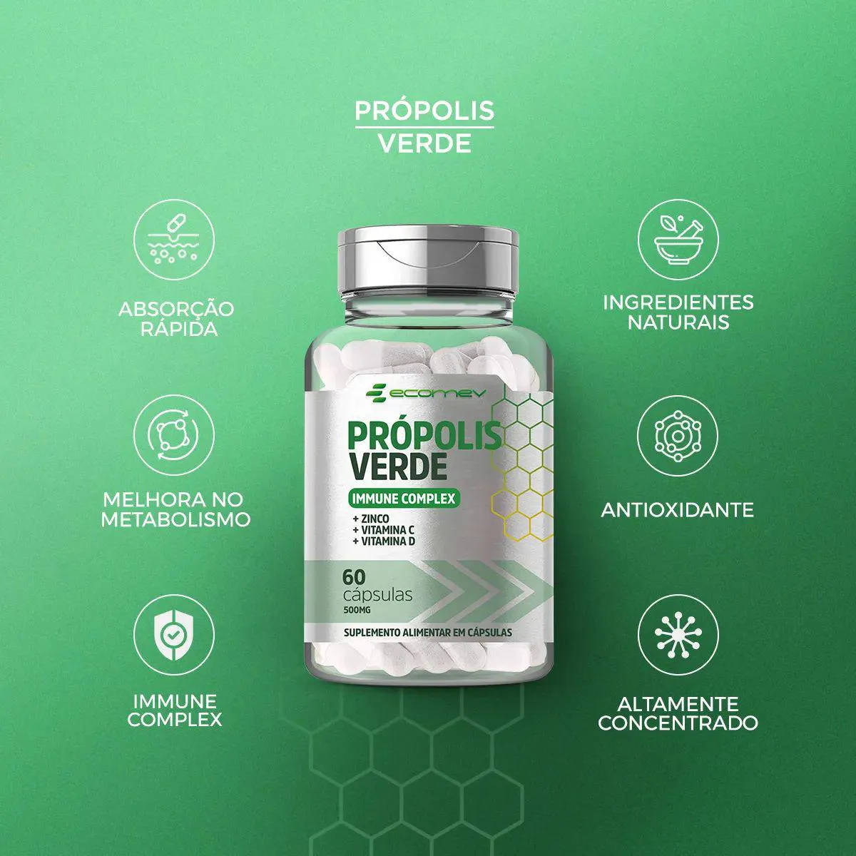 Própolis Verde Immune Complex Com Vit C D3 e Zinco 500Mg 60 Cápsulas Ecomev