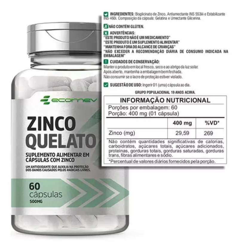 2X ZINCO QUELATO 400MG 60 CáPSULAS ECOMEV