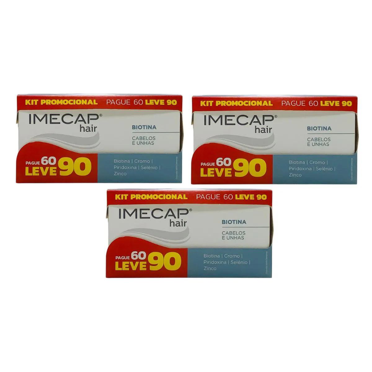 3 Kits Imecap Hair Cabelos e Unhas Pague 60 Leve 90 Cápsulas