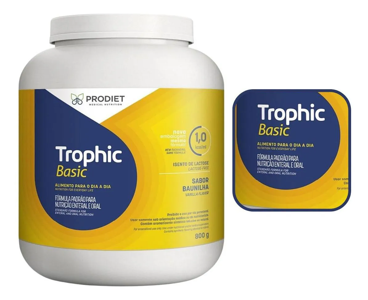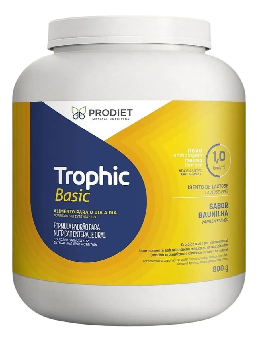 Trophic Basic é uma fórmula nutricionalmente completa, normocalórica (1,2 kcal/ml) e normoproteica, com exclusivo mix de proteínas e baixo teor de gordura saturada.Embalagem: Pote de 800 g.Sabor: Baunilha.