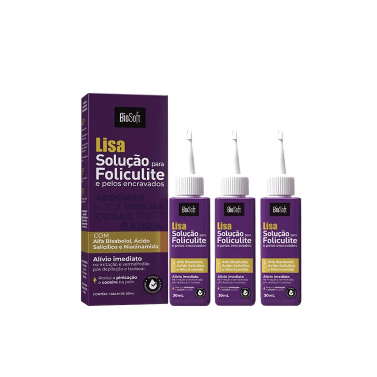Acabe com a foliculite e pelos encravados de forma eficaz! O Balm Solução para Foliculite e Pelos Encravados Lisa Bio Soft foi desenvolvido com alta tecnologia dermocosmética para tratar, acalmar e recuperar a pele após a depilação ou o barbear – seja com lâmina, aparelho elétrico ou cera.