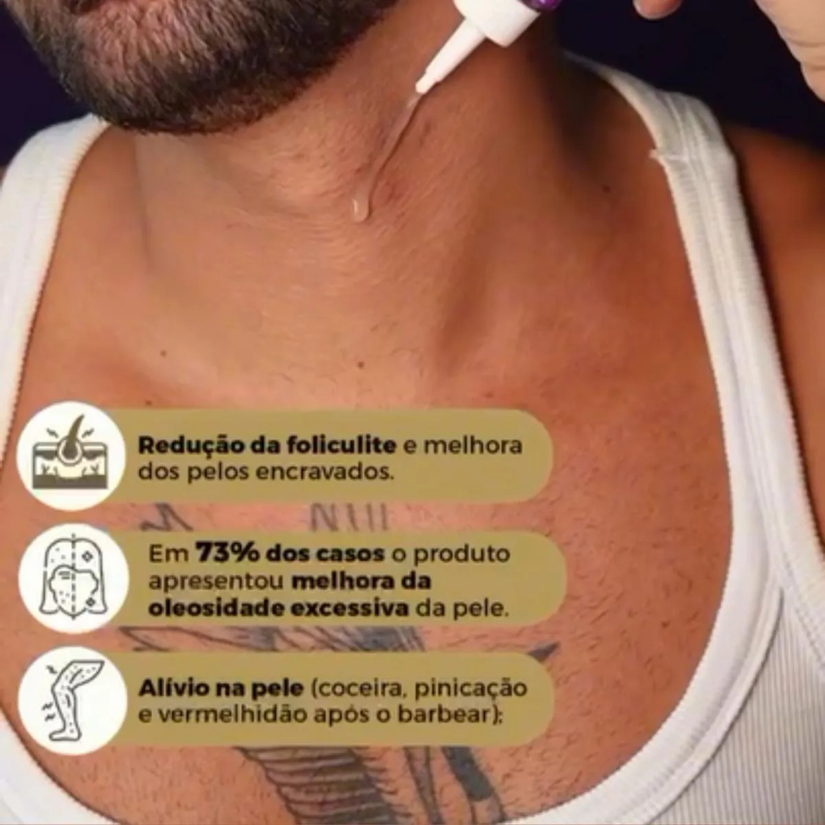 - Trata foliculite e previne pelos encravados.