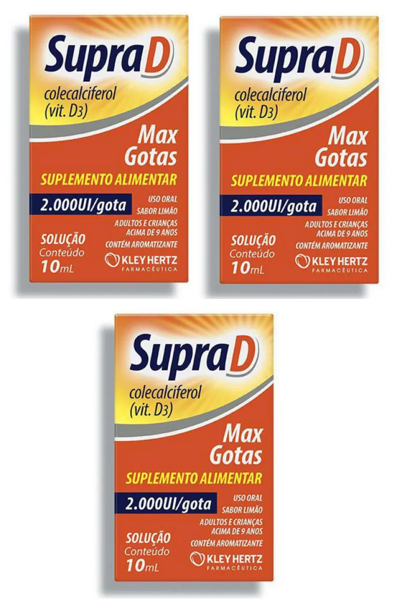 3 Un Supra D 200Ui de Vitamina D Gotas Sabor Limão 20Ml