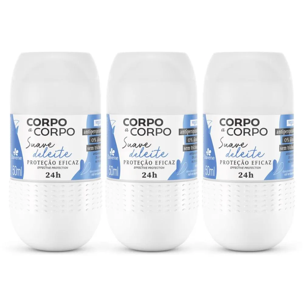 3UN DESODORANTE ANTIPERSPIRANTE ROLL ON SUAVE CORPO A CORPO 50ML DAVENE