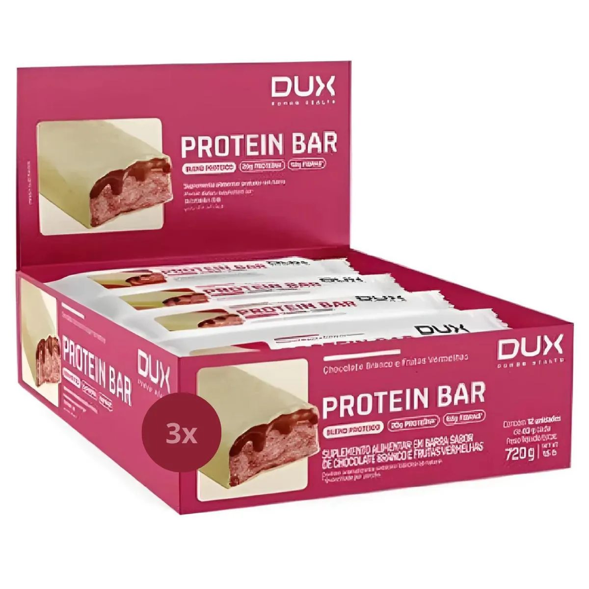 3x Barra Proteica Dux Chocolate Branco e Frutas Vermelhas 12 unidades 60g