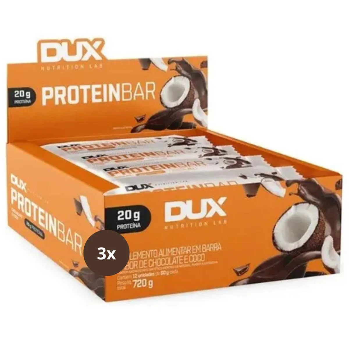 3x Barra Proteica Dux Chocolate e Coco 12 unidades 60g