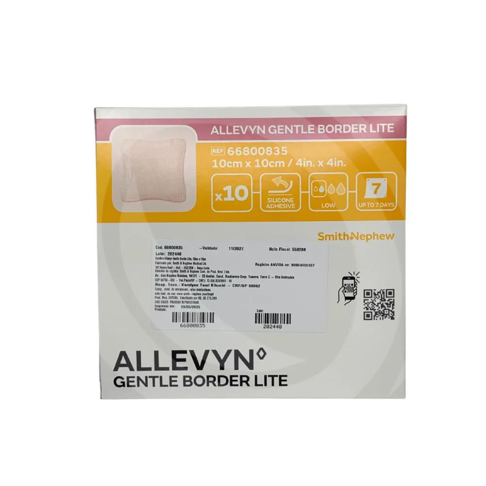 Curativo Allevyn Gentle Border Lite 10 cm × 10 cm – Smith & Nephew – Kit 3 Unidades