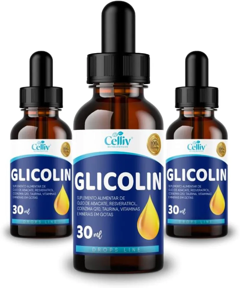 3X GLICOLIN - ÓLEO DE ABACATE, RESVERATROL, COENZIMA Q10, TAURINA E VITAMS 30ML CELLIV