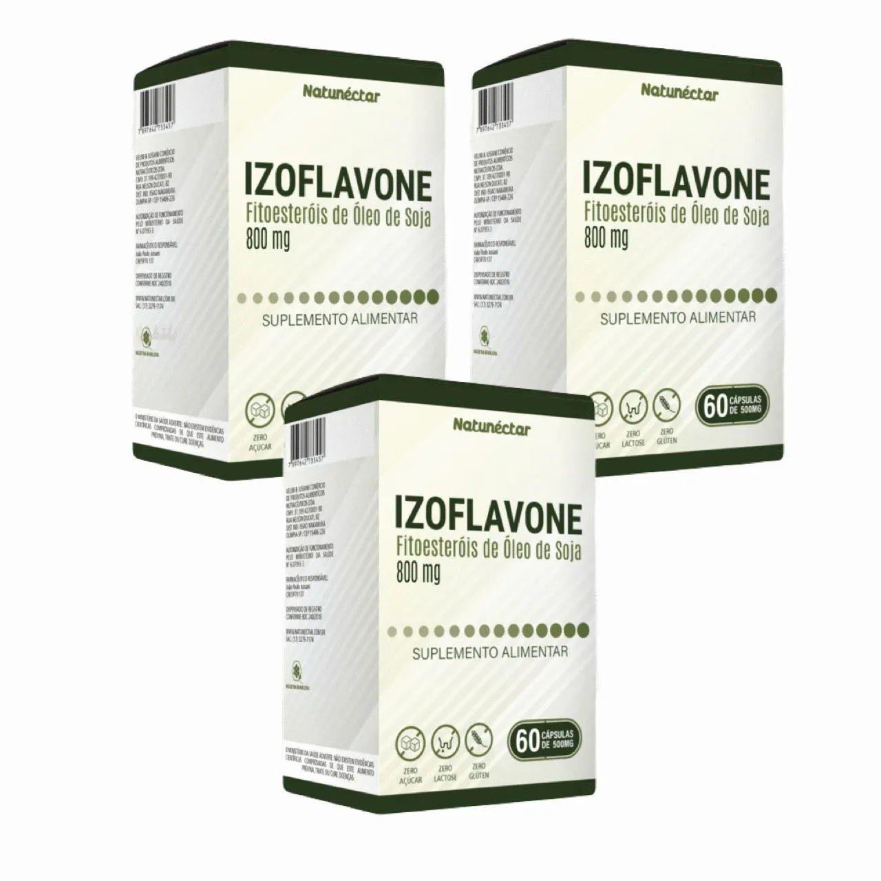 Izoflavone Fitoesteróis de soja 800mg - 60 cápsulas. Kit contendo 3 frascos com 60 cápsulas cada.