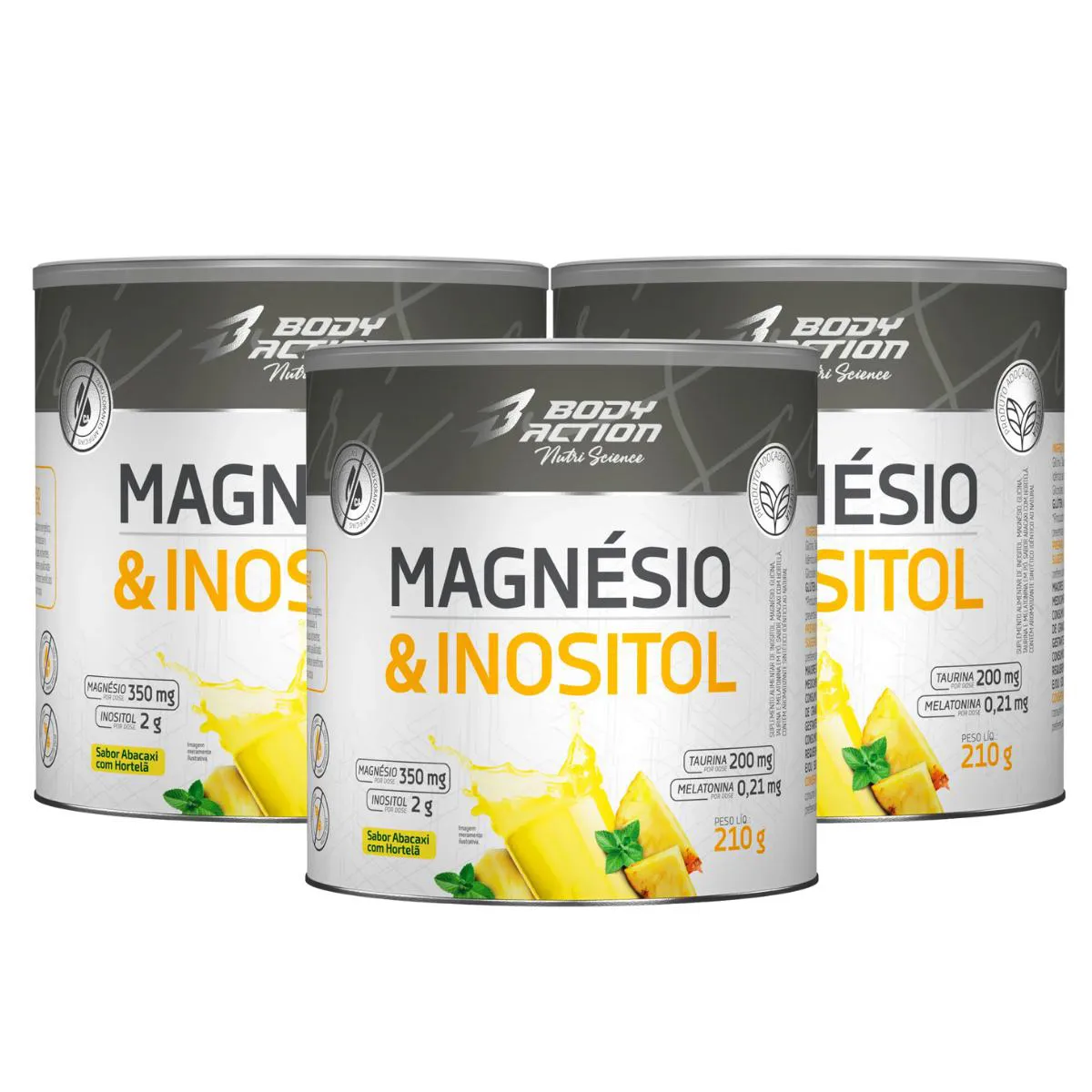 3X Magnésio Inositol Body Action Abacaxi com Hortelã 210G