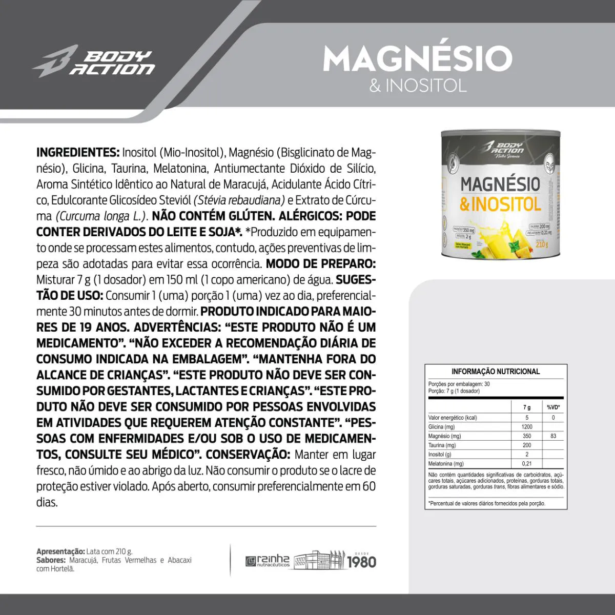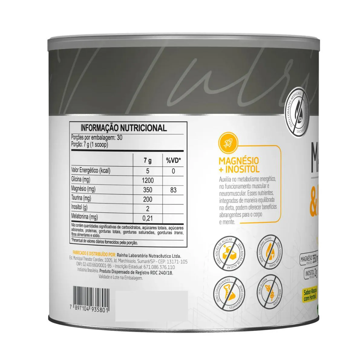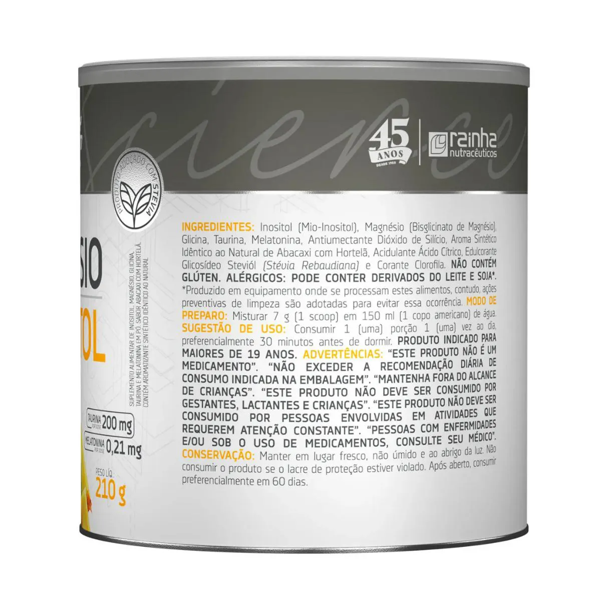 - Contém magnésio, inositol, taurina e melatonina.