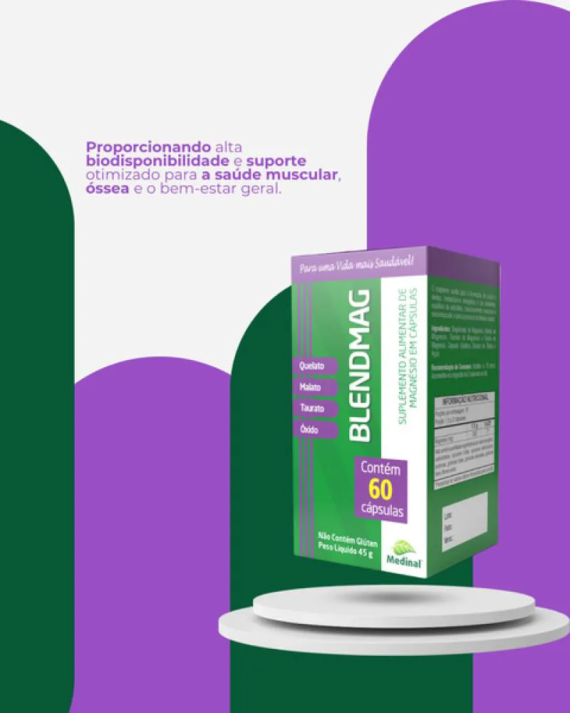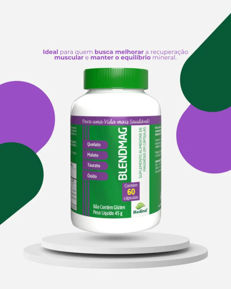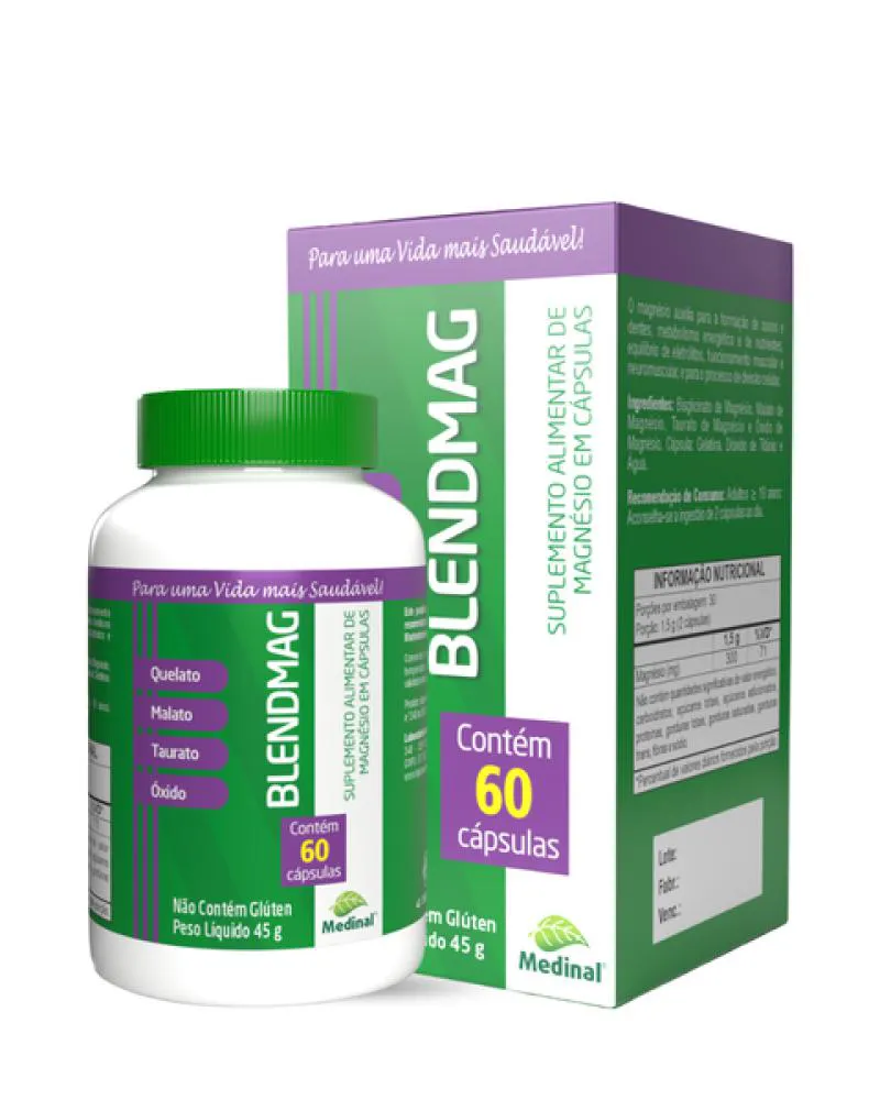 4 Magnésios Blendmag Quelato + Malato + Taurato + Óxido c/60 Cápsulas Medinal -
