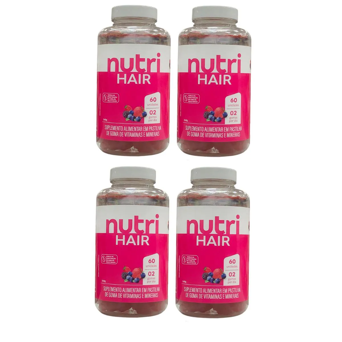 4 Potes Suplemento Nutri Hair em Gomas Cabelos - Nutrihealth 60 Un