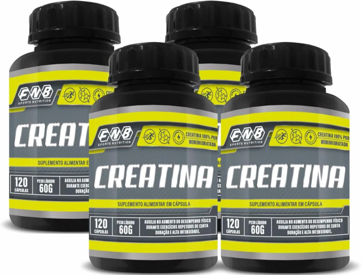 4x Creatina Monohidratada 100% Pura com 120 Cápsulas de 500mg Fnb Sport Nutrition