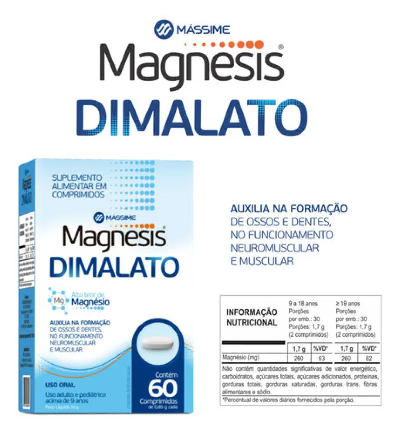 4x Magnesis - Alto Teor Magnésio Dimalato 100% Puro - 60cpr