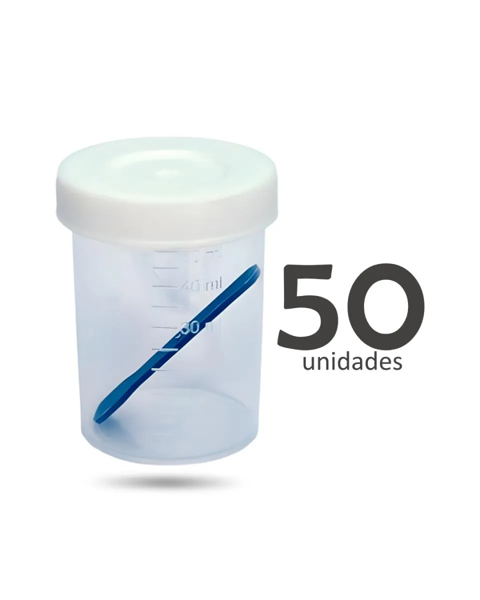 50un Coletor Cristal com Pá Tampa Branca 50ml 3b