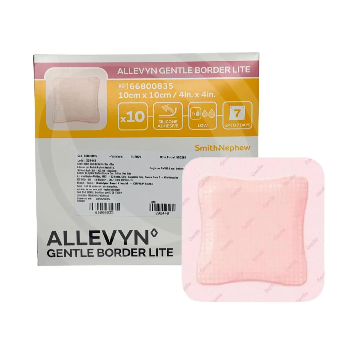 Curativo Allevyn Gentle Border Lite 10 cm × 10 cm – Smith & Nephew – Kit 5 Unidades
