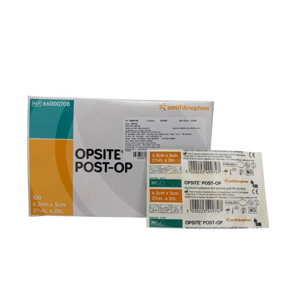 O Opsite Post-Op é um curativo internacionalmente reconhecido pela qualidade da Smith & Nephew. Oferece máxima proteção no pós-operatório, visualização da ferida sem necessidade de remoção, impermeabilidade e até 7 dias de uso contínuo, conforme avaliação clínica.