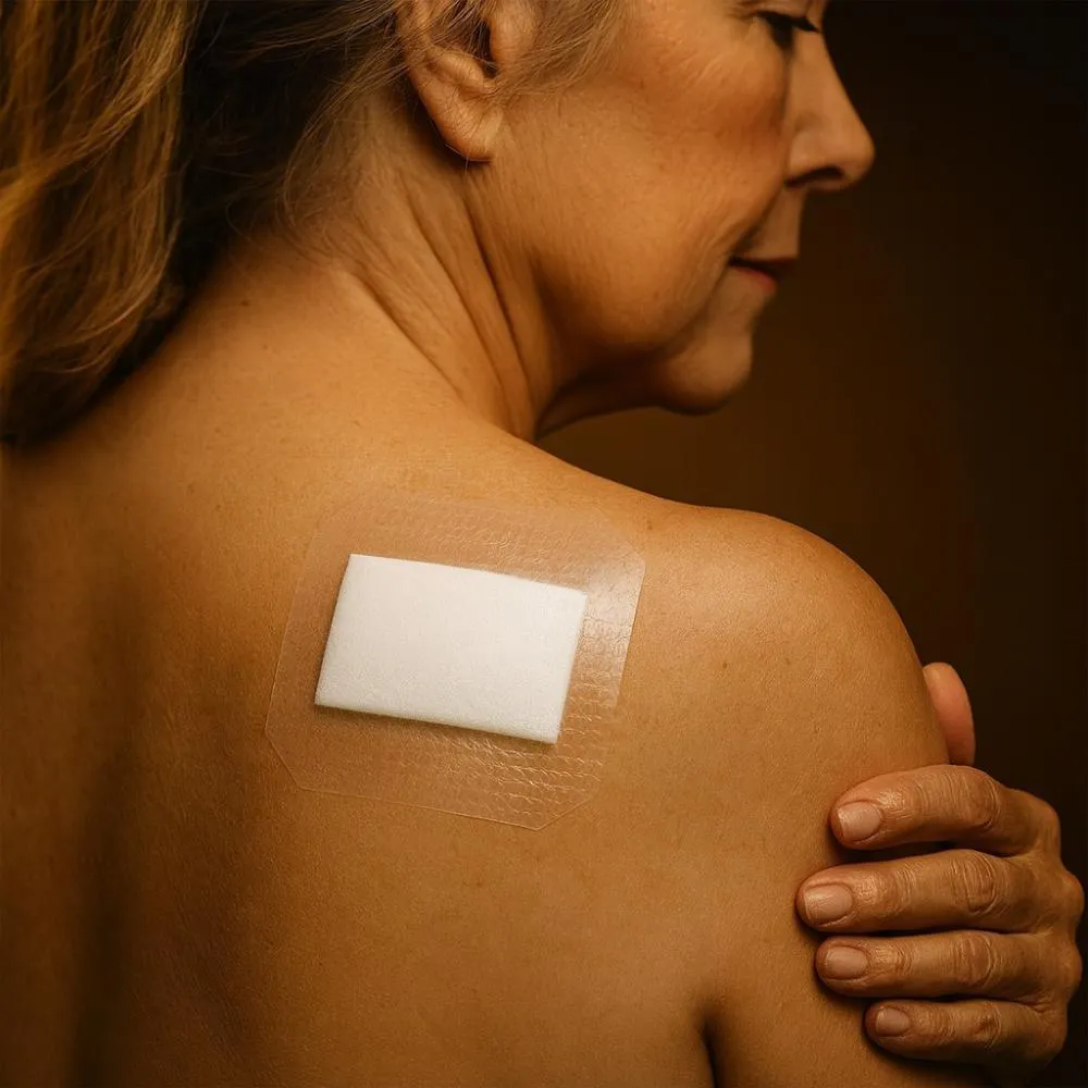 Adesivo hipoalergênico, com baixo risco de irritações.