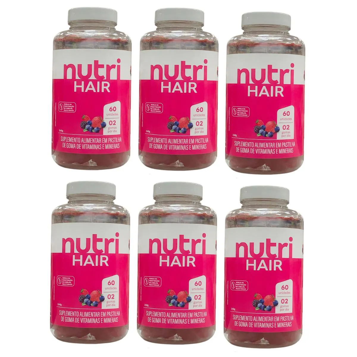 6 Potes Suplemento Nutri Hair em Gomas Cabelos - Nutrihealth 60 Un