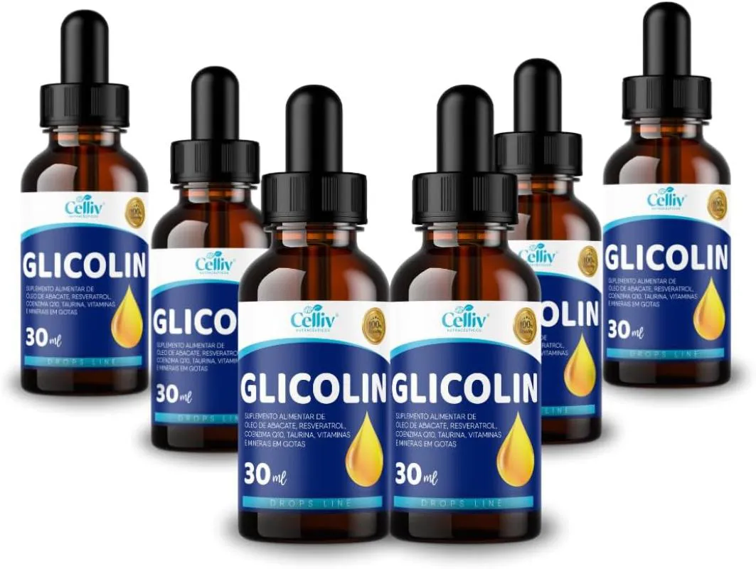6X GLICOLIN - ÓLEO DE ABACATE, RESVERATROL, COENZIMA Q10, TAURINA E VITAMS 30ML CELLIV