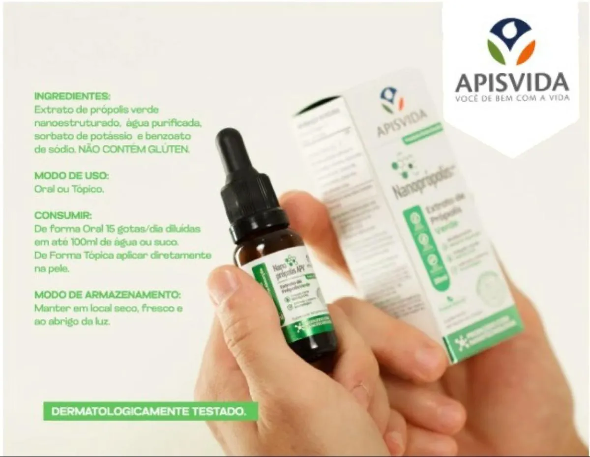 Nanoprópolis- Extrato de Própolis Verde- 20ml- Apis Vida - Kit contendo 6 frascos com 20ml cada.