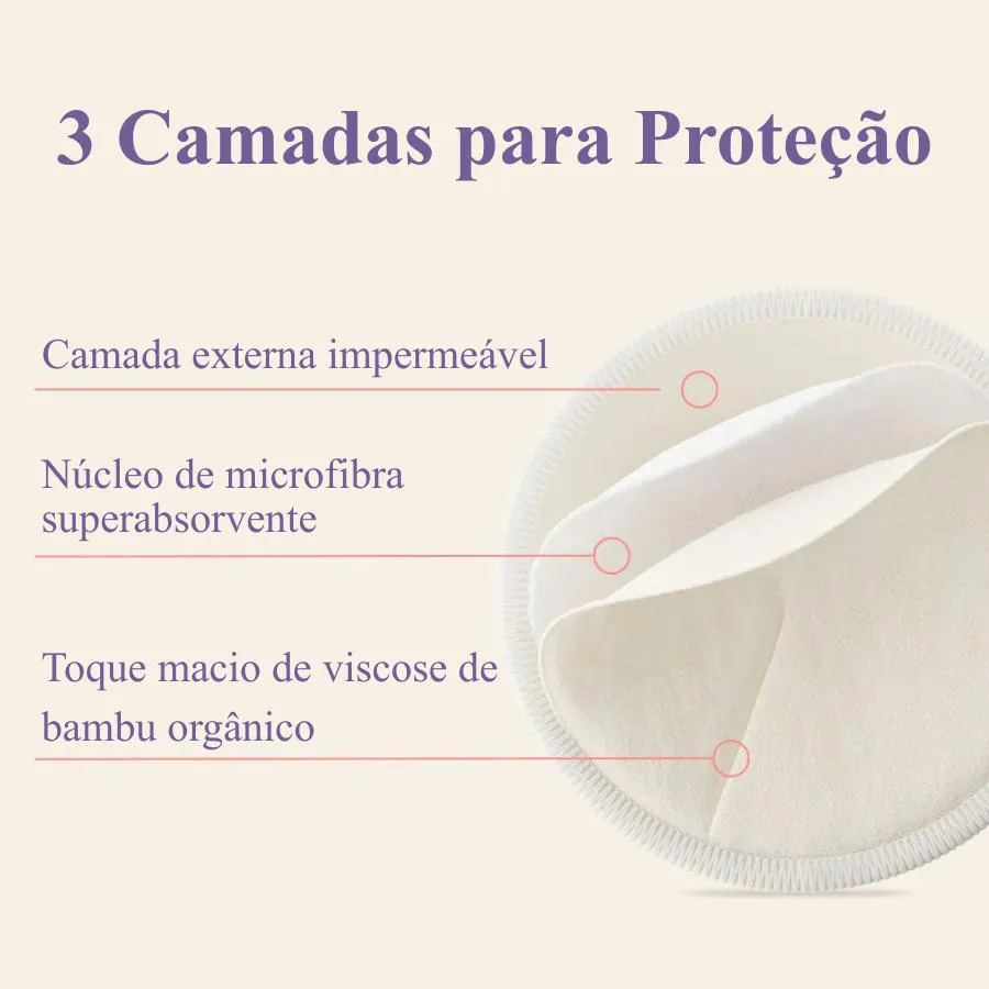 Modo de Uso:Troque os absorventes com frequência para manter a pele saudável. O ideal é substituí-los após cada mamada ou sempre que estiverem úmidos. Enxágue o leite após o uso e lave em máquina com água morna. Para melhores resultados, coloque os absorventes dentro do saco de lavagem incluído.