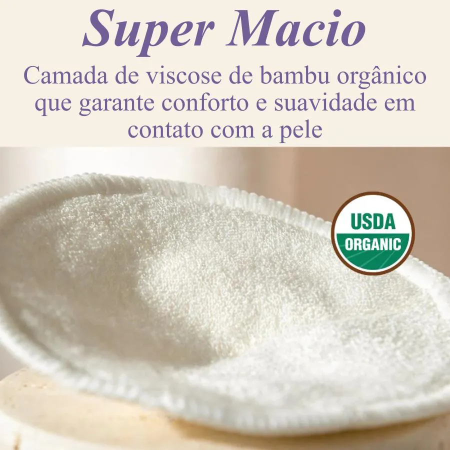 - Nova fórmula com absorção aprimorada, proporcionando mais confiança e proteção contra vazamentos.- Camada interna ultramacia, feita com viscose de bambu orgânico (USDA Certified Organic e OEKO-TEX Standard 100), ideal para peles sensíveis.- Três camadas de proteção à prova de vazamentos, incluindo uma camada externa impermeável.- Formato anatômico que se ajusta ao corpo, oferecendo um encaixe confortável e discreto.- Fácil de lavar e secar na máquina, com material durável e de alta qualidade.