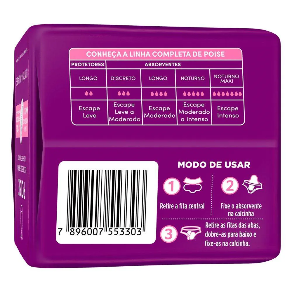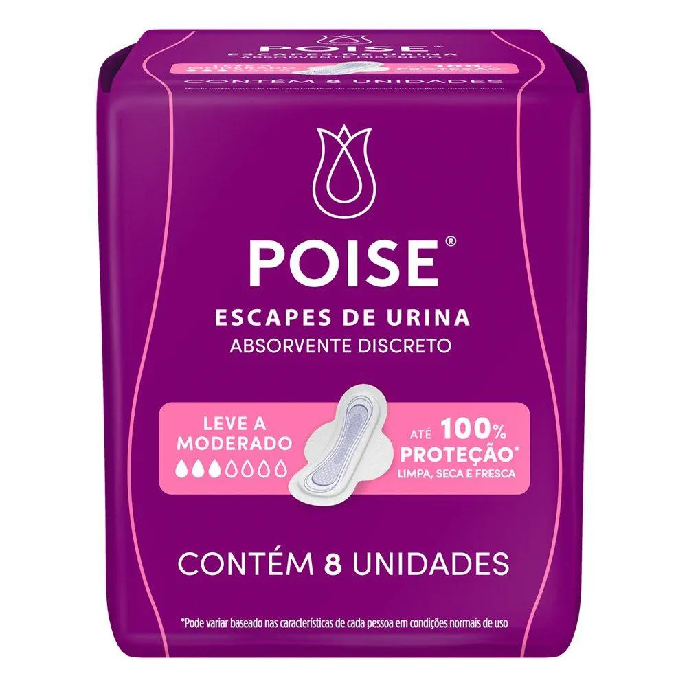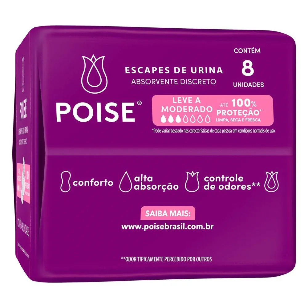 Absorvente Poise Discreto com Abas para Escape de Urina - Embalagem com 8 Unidades