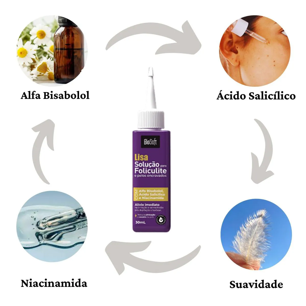 Acabe com a foliculite e pelos encravados de forma eficaz! O Balm Solução para Foliculite e Pelos Encravados Lisa Bio Soft foi desenvolvido com alta tecnologia dermocosmética para tratar, acalmar e recuperar a pele após a depilação ou o barbear – seja com lâmina, aparelho elétrico ou cera.