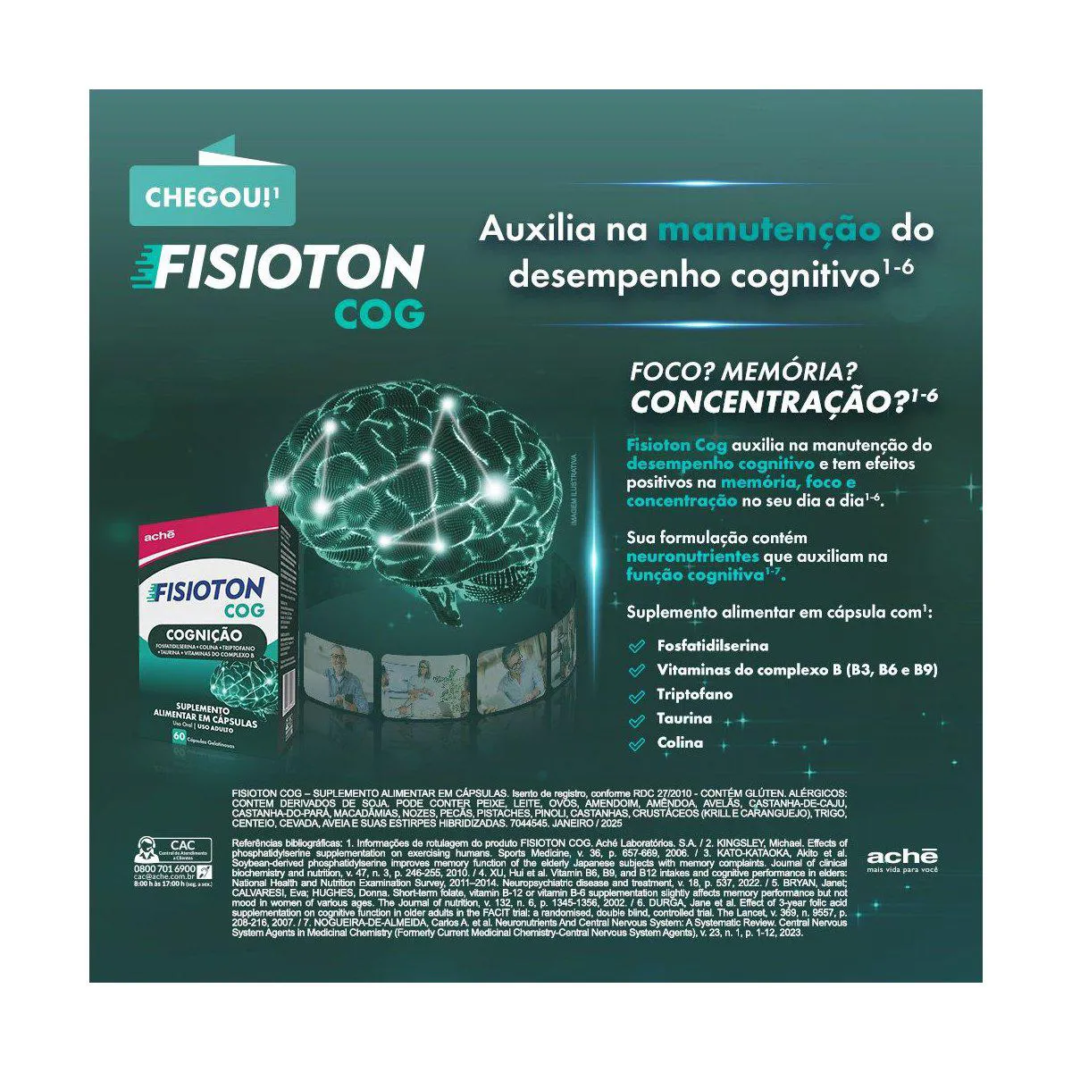 Fisioton Cog é um suplemento alimentar em cápsulas gelatinosas formulado com uma associação poderosa entre Fosfatidilserina, colina, triptofano, taurina e vitaminas do complexo B para otimizar as funções cognitivas.
