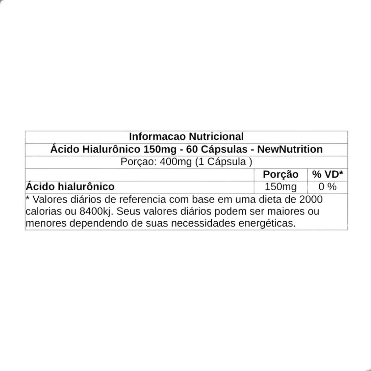 Ácido Hialurônico 60 Capsulas New Nutrition Natural
