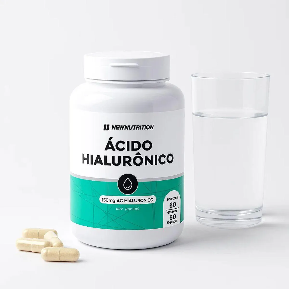 Ácido Hialurônico 60 Capsulas New Nutrition cápsulas de ácido hialurônico para uso diário, frasco com 60 unidades.