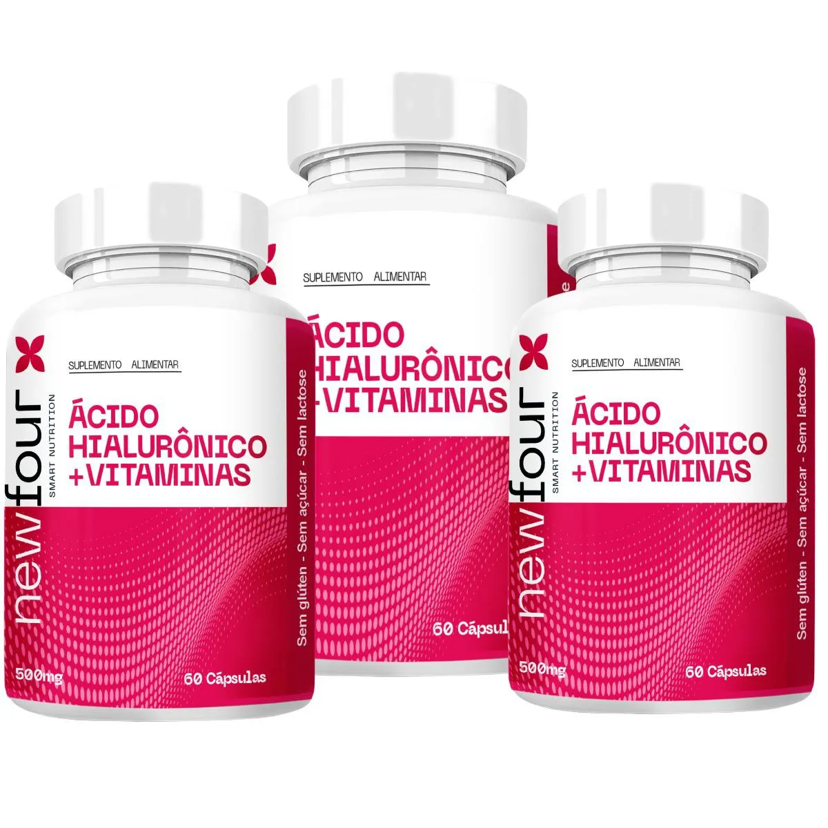Ácido Hialurônico + Vitaminas a , B5 , C , e Kit com 3 Potes com Total de 180 Capsulas