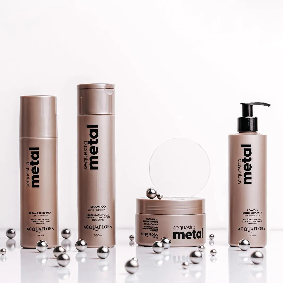 O Acquaflora Sequestra Metal é um leave-in condicionante desenvolvido para tratar e proteger os cabelos contra metais pesados e toxinas absorvidos pela água e poluição. Sua formulação contém moléculas naturais de limão, maçã e pepino, além de um complexo inteligente que neutraliza e remove íons metálicos depositados na fibra capilar. O produto oferece hidratação, desembaraçamento e finalização capilar, com proteção térmica e solar.