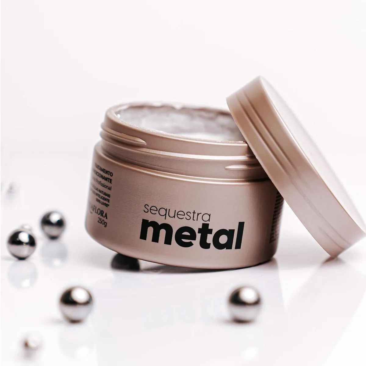 O Tratamento Condicionante Sequestra Metal Acquaflora condiciona, trata e regenera os cabelos após os procedimentos de coloração, mechas ou descoloração e durante a manutenção da cor artificial ou natural dos fios. Sua formulação é constituída por moléculas naturais obtidas do limão, maçã e pepino + complexo inteligente que neutralizam e removem os íons metálicos e as toxinas depositadas na fibra capilar. O resultado são cabelos mais resistentes e com maior vibrância na cor.   Conselho de Aplicação   Com os cabelos limpos e úmidos, aplicar o Tratamento Condicionante Sequestra Metal Acquaflora por toda a extensão dos fios. Massagear suavemente, deixar agir por alguns minutos e enxaguar bem. Utilizar após procedimentos de coloração, mechas e descoloração e uma vez na semana para manutenção da cor artificial ou natural.