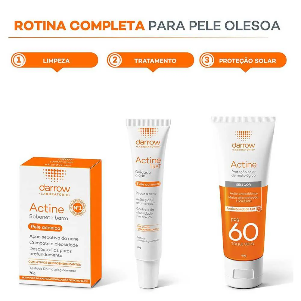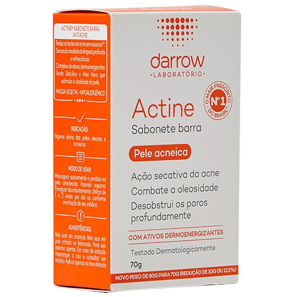 O Actine Sabonete Barra tem sua fórmula enriquecida com Aloe Vera e murumuru, que juntos conseguem hidratar a pele reduzindo o efeito de repuxamento. Além disso, o ativo murumuru consegue amenizar as vermelhidões da pele do rosto, ajudando a reduzir as pequenas lesões causadas pela acne.