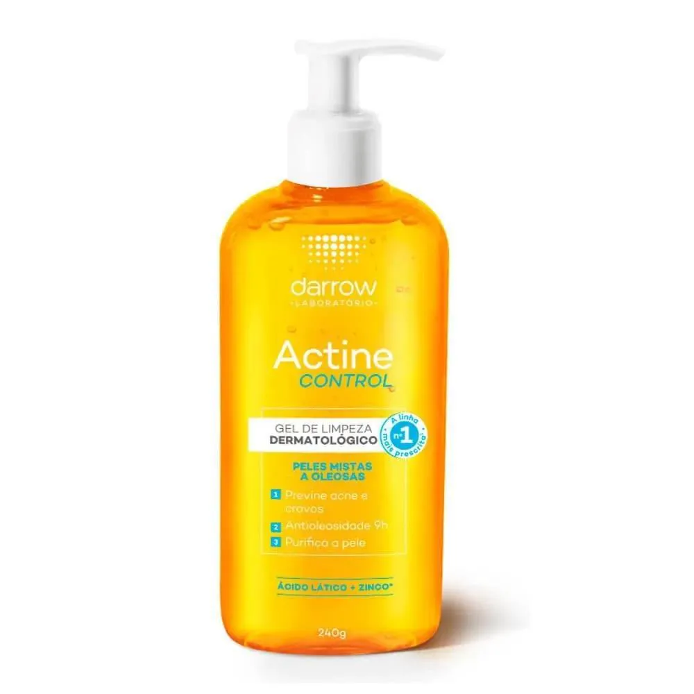 O Actine Control Gel de Limpeza é um dermocosmético de uso diário desenvolvido especialmente para peles oleosas a mistas, fabricado pela marca DARROW. Trata-se de um produto de limpeza facial que age profundamente nos poros, com fórmula segura, hipoalergênica e não testada em animais. Serve para realizar limpeza profunda e imediata da pele, controlando a oleosidade por até 9 horas, reduzindo o brilho excessivo e desobstruindo os poros. Previne lesões de acne e deixa a pele com sensação refrescante, sendo indicado para o público adulto.