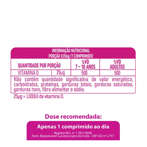 Addera D3 é um medicamento à base de vitamina d, com altas dosagens, indicado no tratamento auxiliar da desmineralização óssea (retirada de minerais) pré e pós-menopausa, do raquitismo, da osteomalacia, da osteoporose e na prevenção de quedas e fraturas em pessoas com deficiência de vitamina D.Addera D3 atua regulando positivamente o processamento e a fixação do cálcio no organismo. É essencial para promover a absorção e utilização de cálcio e fosfato, e para a calcificação normal dos ossos. A Vitamina D tem uma ampla gama de benefícios para o corpo humano, sendo fundamental para a manutenção de alguns sistemas e funcionamento de outros.Os principais benefícios são: Vitamina D é essencial para a absorção do cálcio, sendo que sem ela só 10-15% do cálcio é absorvido pelo intestino. Auxilia na formação de ossos e dentes, atuando no estimulo de células ósseas.Modo de usar 1 comprimido ao dia.
